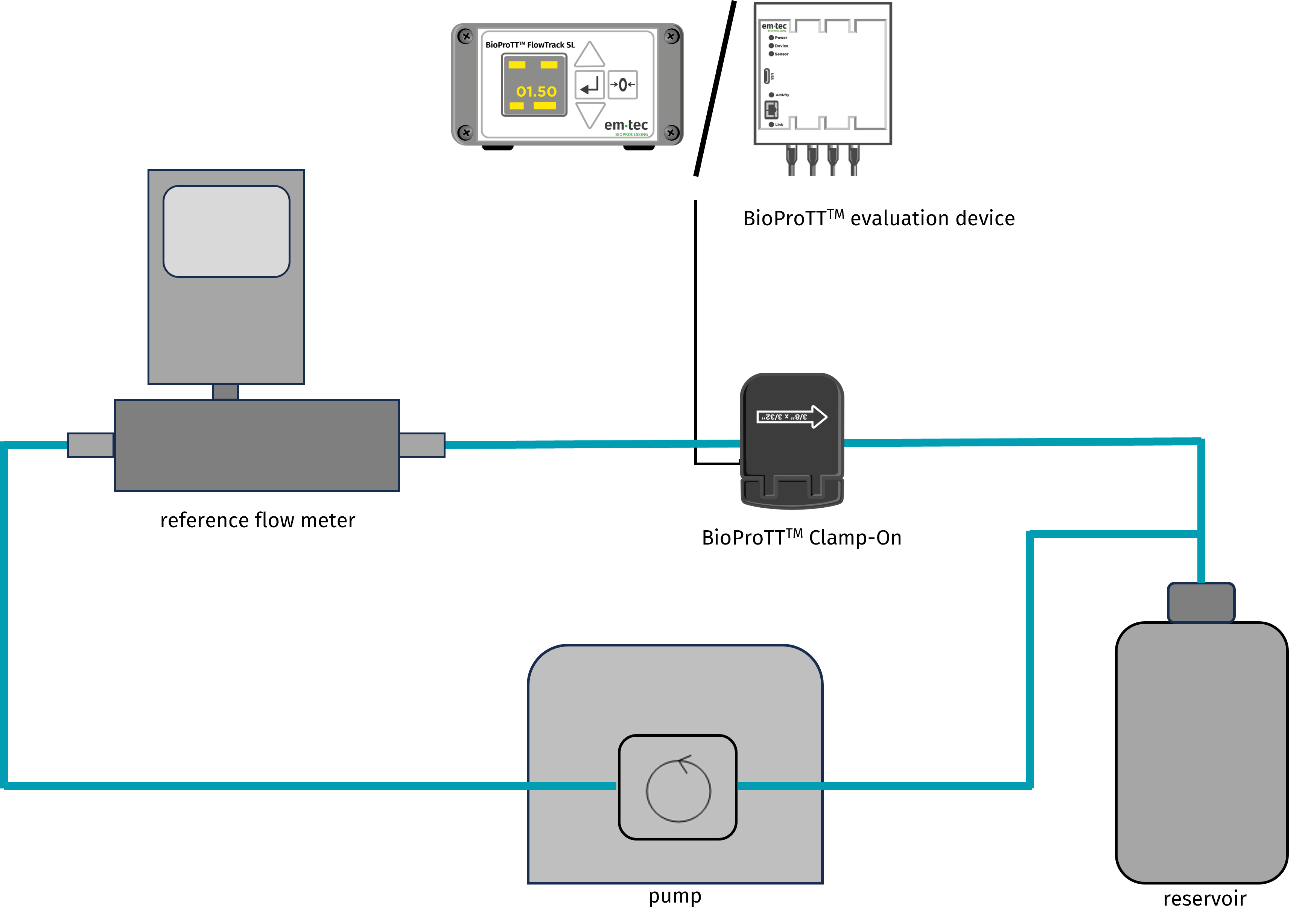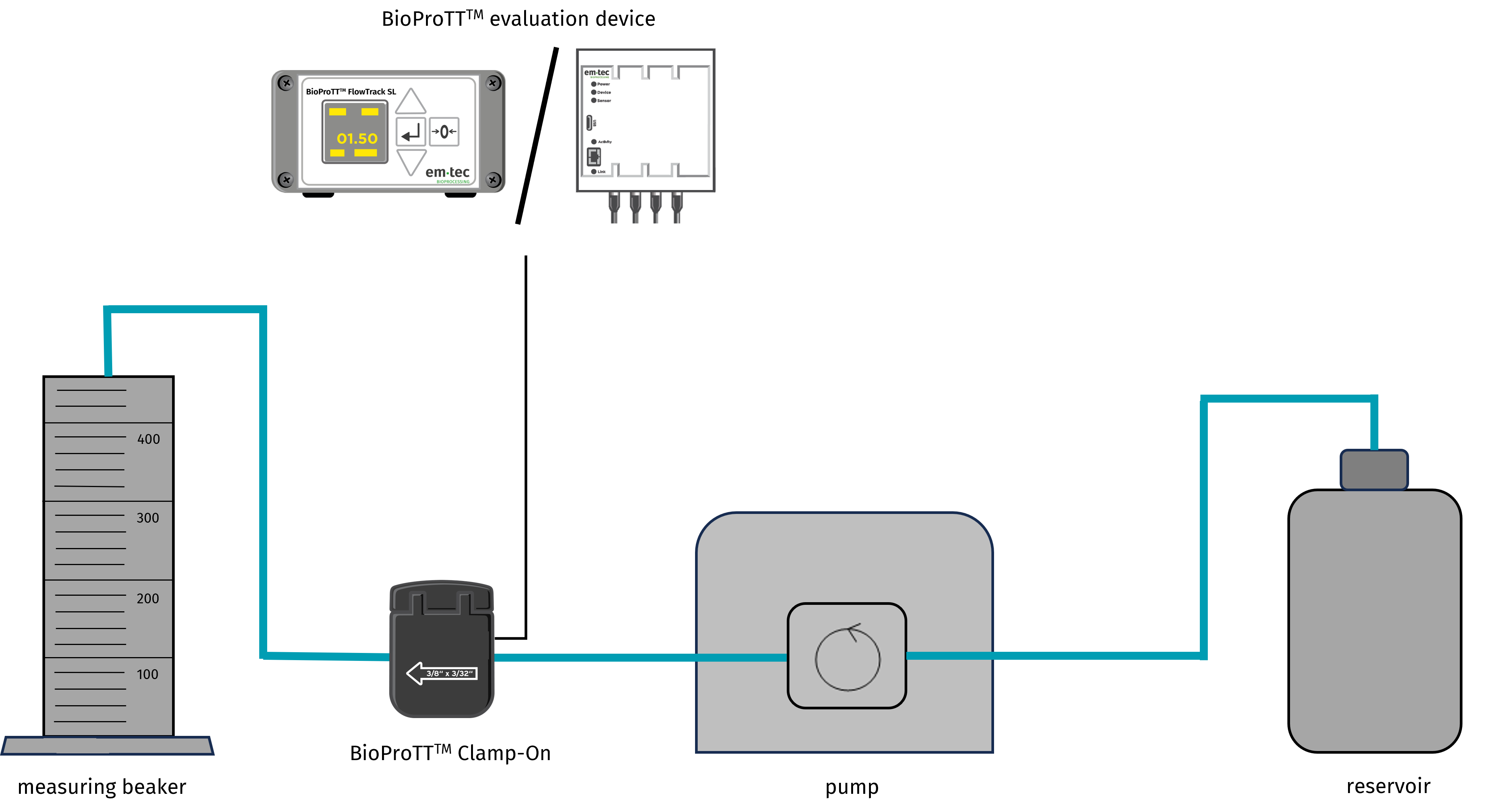 4. Once the calibration factor has been determined, it can be set on the transmitter. For the BioProTT™ FlowTrack plus, this can be done directly on the device using the display. For the BioProTT™ FlowMCP, the calibration factor can be set using the web interface.
