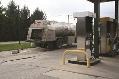 Chardon Oil tank truck delivering fuel to a local gas station. Every one of Chardon Oil’s tank trucks now feature Blackmer® TX Series Sliding Vane Pumps.