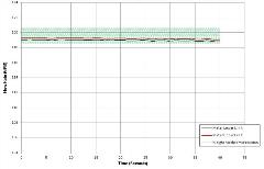 As can be seen, the precision of the Coriolis meter is much tighter than the positive displacement meter, and was as precise as the weight method at 9 gpm and more precise at the higher flow rates. The Coriolis flow meter and the weight method have a high degree of correlation and statistically are indistinguishable over the entire time and range of flow measured. On the other hand, the positive displacement meter, with a much wider precision range, does not conform as well to the weight method of flow measurement.