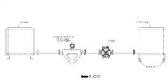 The Emerson meter was also installed in the LPG test loop horizontally. However, in keeping with LPG custody transfer protocol, a vapor eliminator and back-check valve were installed with the meter. This system is also used in a similar manner: a pump is tested, piping is drained and the pump is removed for the next pump installation. The Emerson meter has a flow capability of nearly 400 gpm of water.