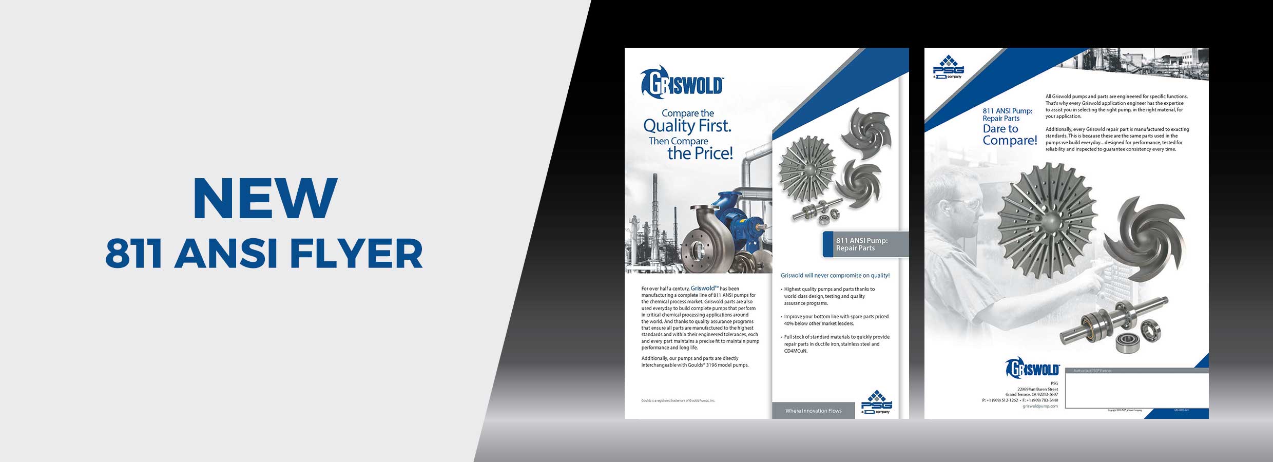 Griswold is pleased to announce the release of an additional 811 ANSI Pump Flyer. Updated to include the most current data and information about the innovative line of 811 ANSI pumps, this new flyer also highlights our dedication to quality, reliability and customer service. The flyer is available on the Griswold website of by clicking the link below.