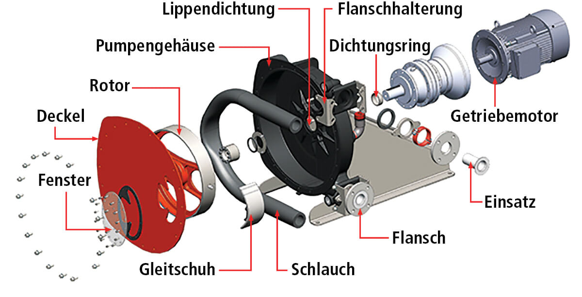 ABAQUE Schlauchpumpen sind die Lösung für abrasive Produkte, die Suspensionspartikel enthalten.