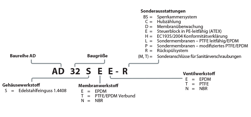 Bei der Entwicklung der ALMATEC Druckluft-Membranpumpen in Edelstahl wurde besonderer Wert auf die Ausgestaltung der Produkträume gelegt. Das Ergebnis: weiche Umlenkungen, glatte Durchströmung und Vermeidung von Toträumen. Das Bild zeigt ein Pumpenmodell mit der Sonderausstattung Rückspülsystem.
