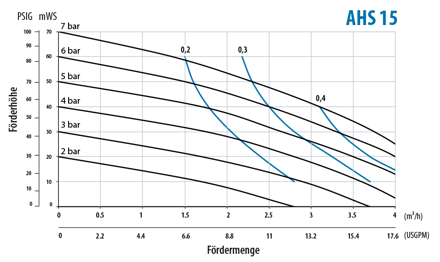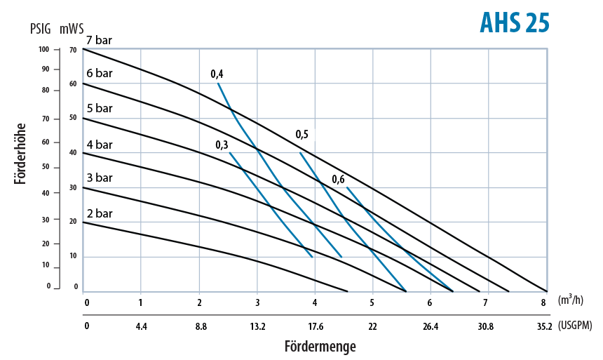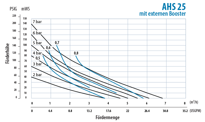 Almatec Pumpe AHS25 Booster Leistungsbereich