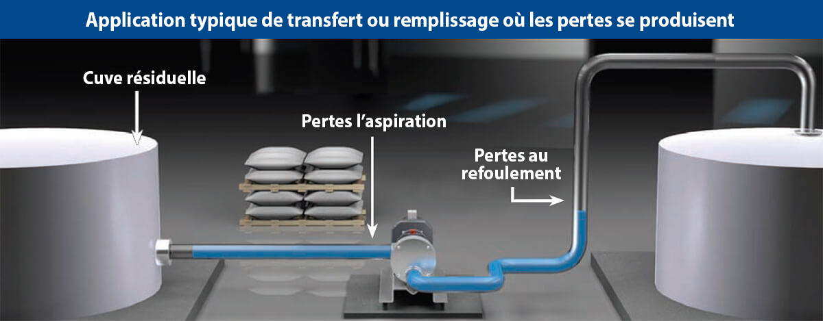 Les technologies de pompes telles que les pompes à lobes, à piston circonférentiel, centrifuges; péristaltiques ou à cavité progressives sont souvent choisies pour faciliter le transfert de fluides bruts ou finis durant la production. Ces pompes ne sont toutefois pas capables de vidanger les tuyauteries des liquides qu'elles contiennent. La récupération de produit consiste à vider au maximum les tuyauteries pour y récupérer un produit encore utilisable.Comme toutes ces technologies de pompe sont souvent incapables de remplir ces fonctions de manière satisfaisante. Il existe une meilleure option disponible, qui, si la bonne technologie de pompage est utilisée, peut aider les fabricants à atteindre des taux de récupération de produit de 60 à 80 %.
