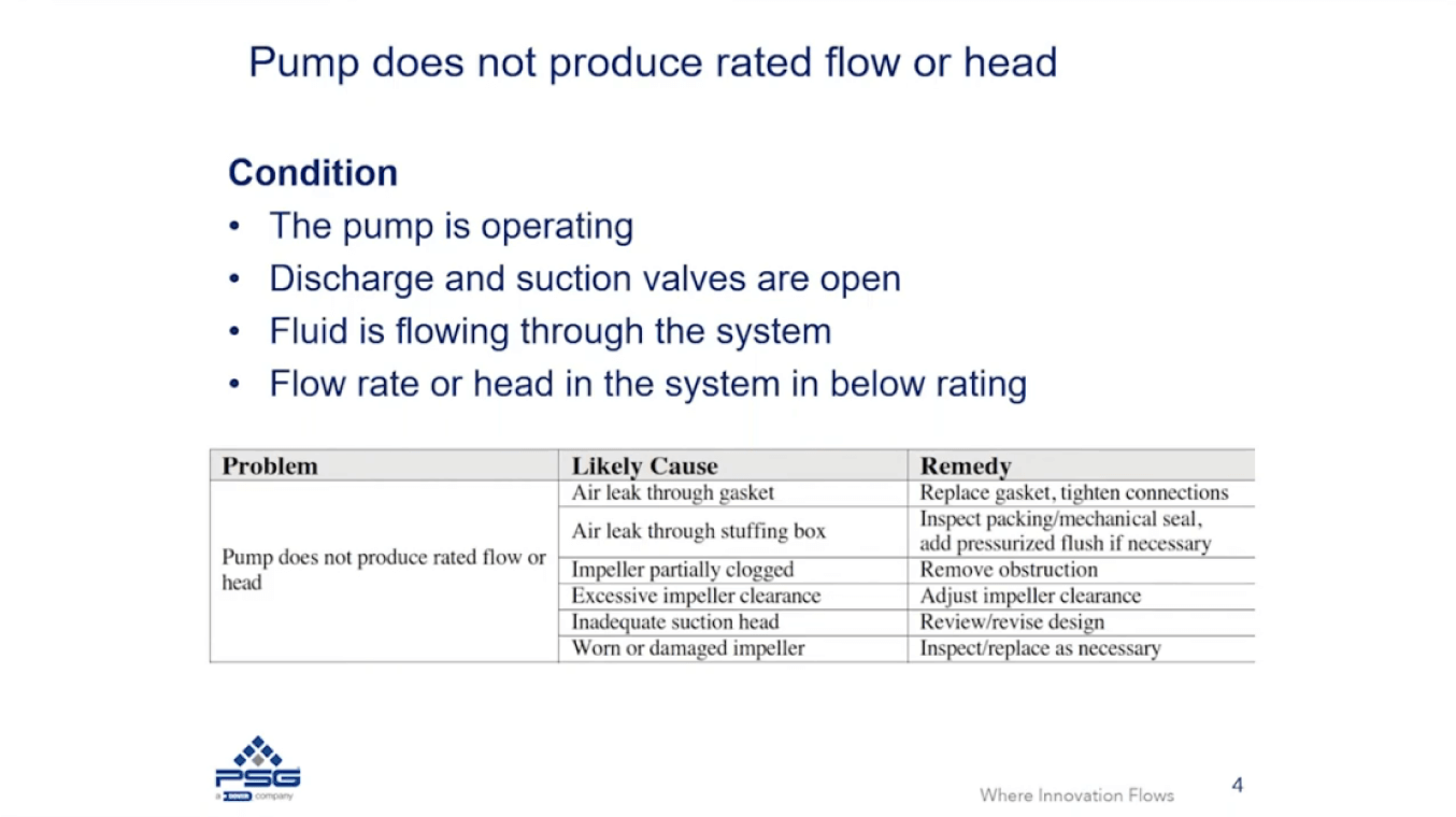 Is your centrifugal pump having trouble producing the rated flow or head? In this Centrifugal Pump Minute, James Farley, Senior Director of Product Management for Griswold, discusses the conditions and likely causes as to why this could be happening and provides remedies to troubleshoot the issue.
