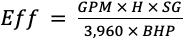 To illustrate the BEP for target pump operation, calculate pump efficiency based on head, flow, specific gravity and horsepower.