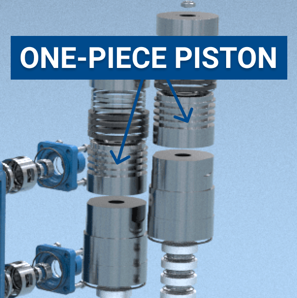 Ductile iron pistons are connected to the rod with a single positive locking nut