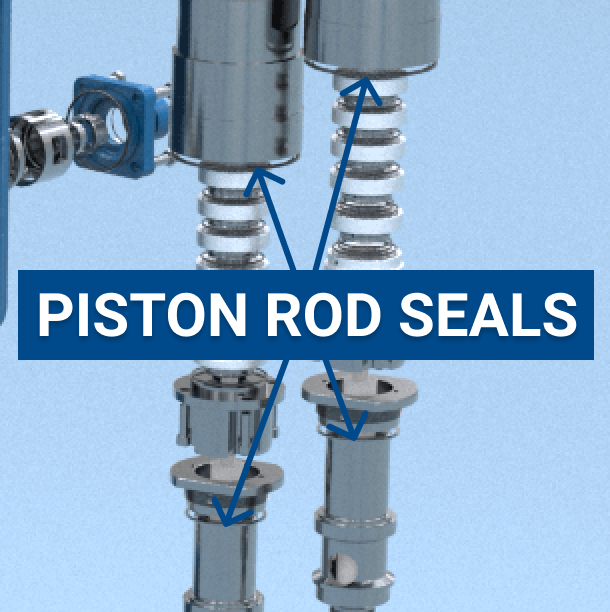 Loaded glass filled PTFE piston rod seals self-adjust to maintain constant sealing pressure around the piston rods, preventing crankcase oil contamination and cylinder blow-by