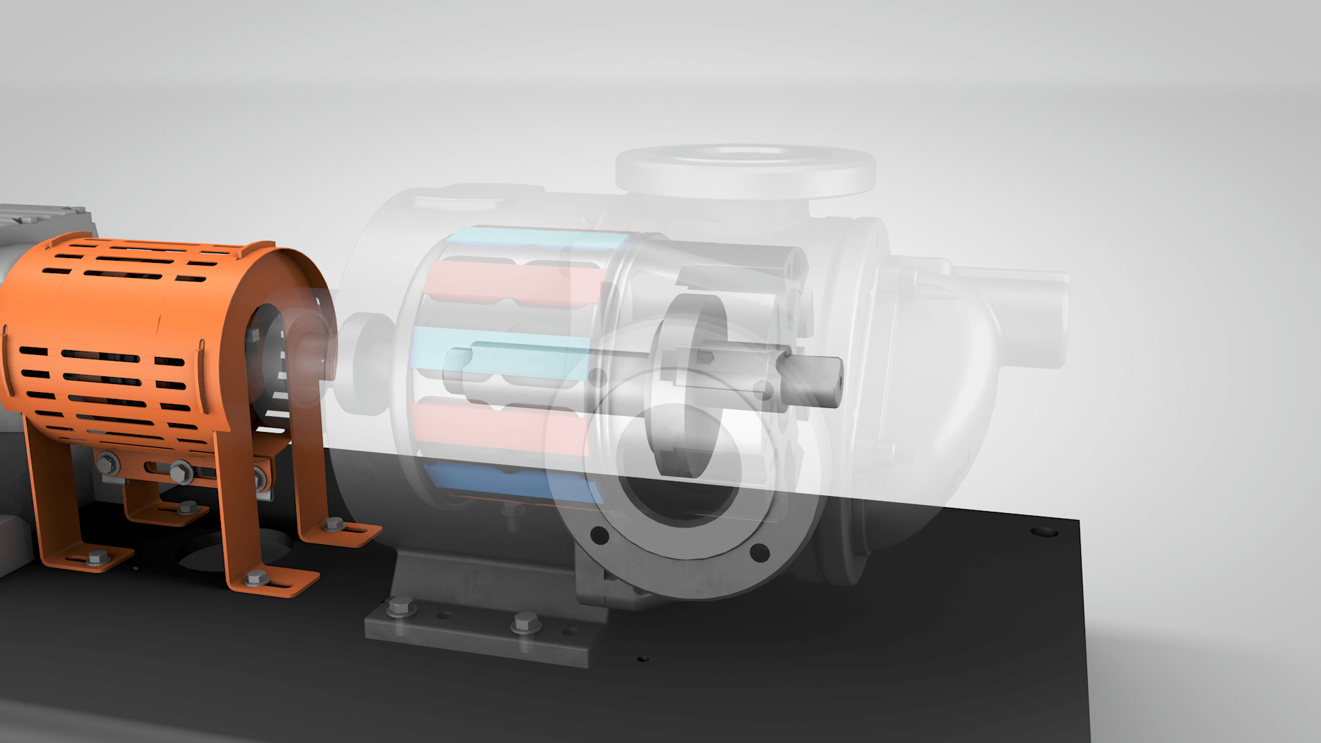 Foot print interchangeable with most mechanically sealed and seal-less internal gear pumps in use today, with no need for piping, driver, baseplate or coupling modifications