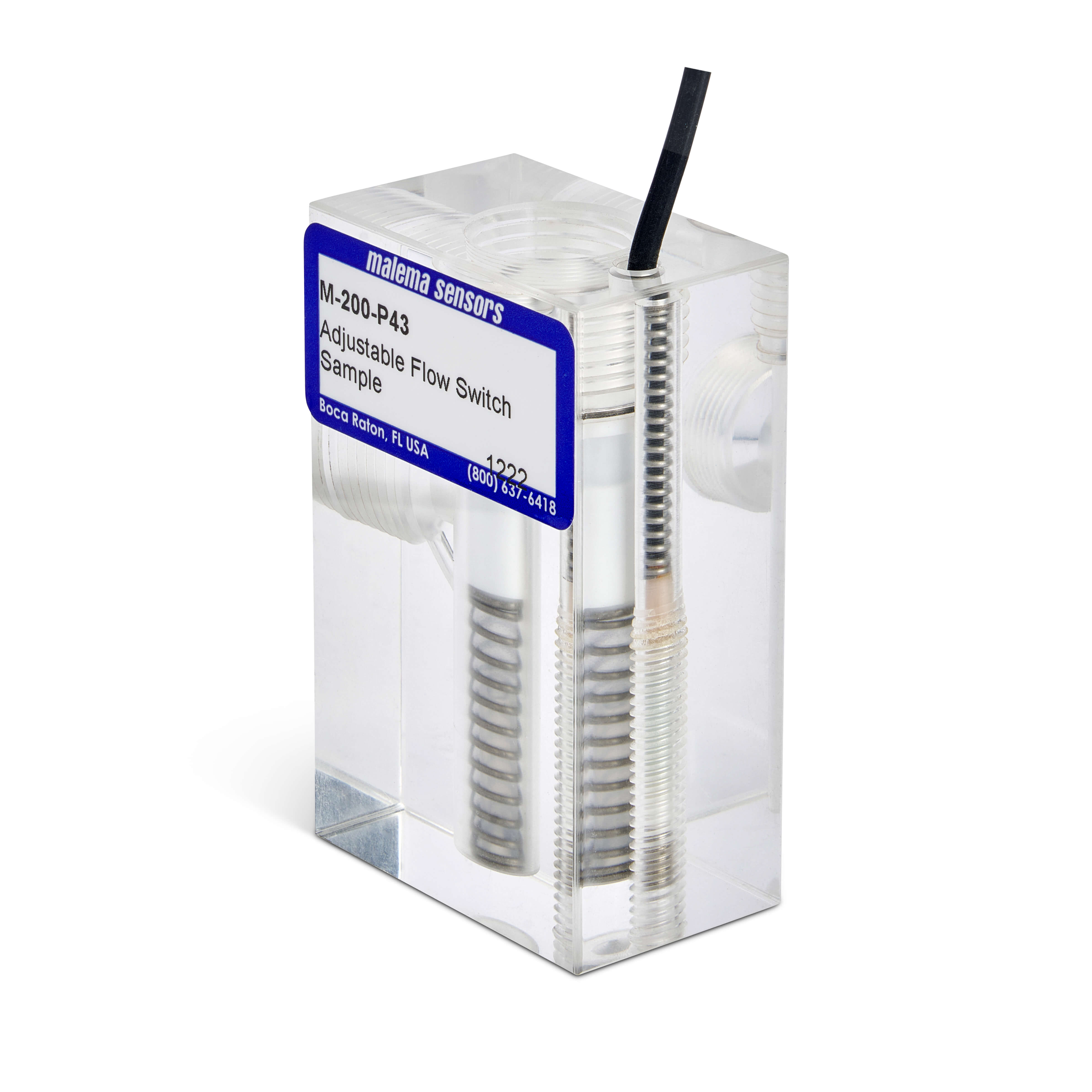 Malema Adjustable Flow Switches with right angle flow can be configured with a specific set point and further adjusted in the field to meet changing requirements. These extremely accurate adjustable flow switches provide repeatability of 5% and have options for SPST or SPDT configurations. Malema applications engineers can help size the proper flow switch for each unique application. With a wide range of sizes, materials, and configurations, Malema provides numerous options for Adjustable Set Point Flow Switches.