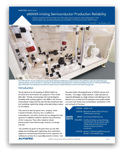 As one of the most critical industrial applications in the world, the semiconductor industry is in great demand for pumps, flow meters and sensor solutions that overcome the many challenges inherent in producing semiconductor production. Utilizing solutions engineered to handle high-purity chemicals, abrasive slurries, acids and solvents reliably and consistently give semiconductor manufacturers an advantage in this highly competitive market.