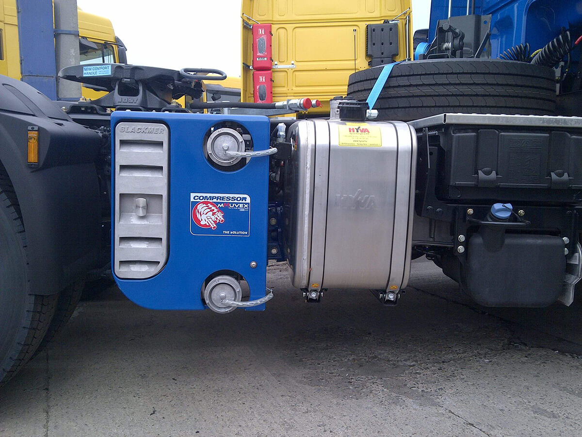 Mouvex® has developed inter-cooled modular screw compressor systems to provide mobile solutions to offload the most difficult dry bulk products. They are fitted with common accessories for PTO direct-drive systems that can be mounted inside the truck frame.