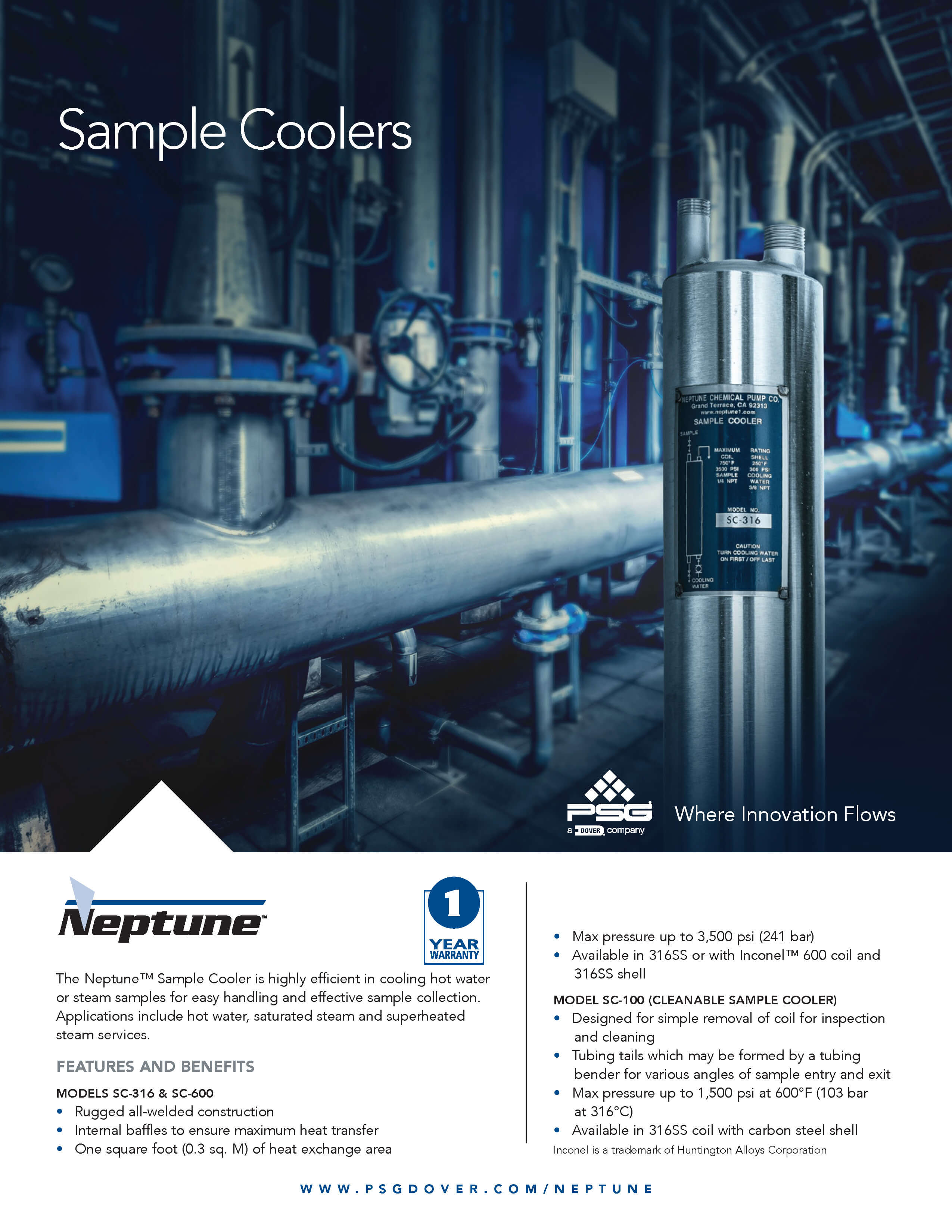 Neptune Sample Coolers are used to cool hot water or steam samples for easy handling and effective sample collection. Sample coolers are suitable for use on hot water, saturated steam, or superheated steam services.