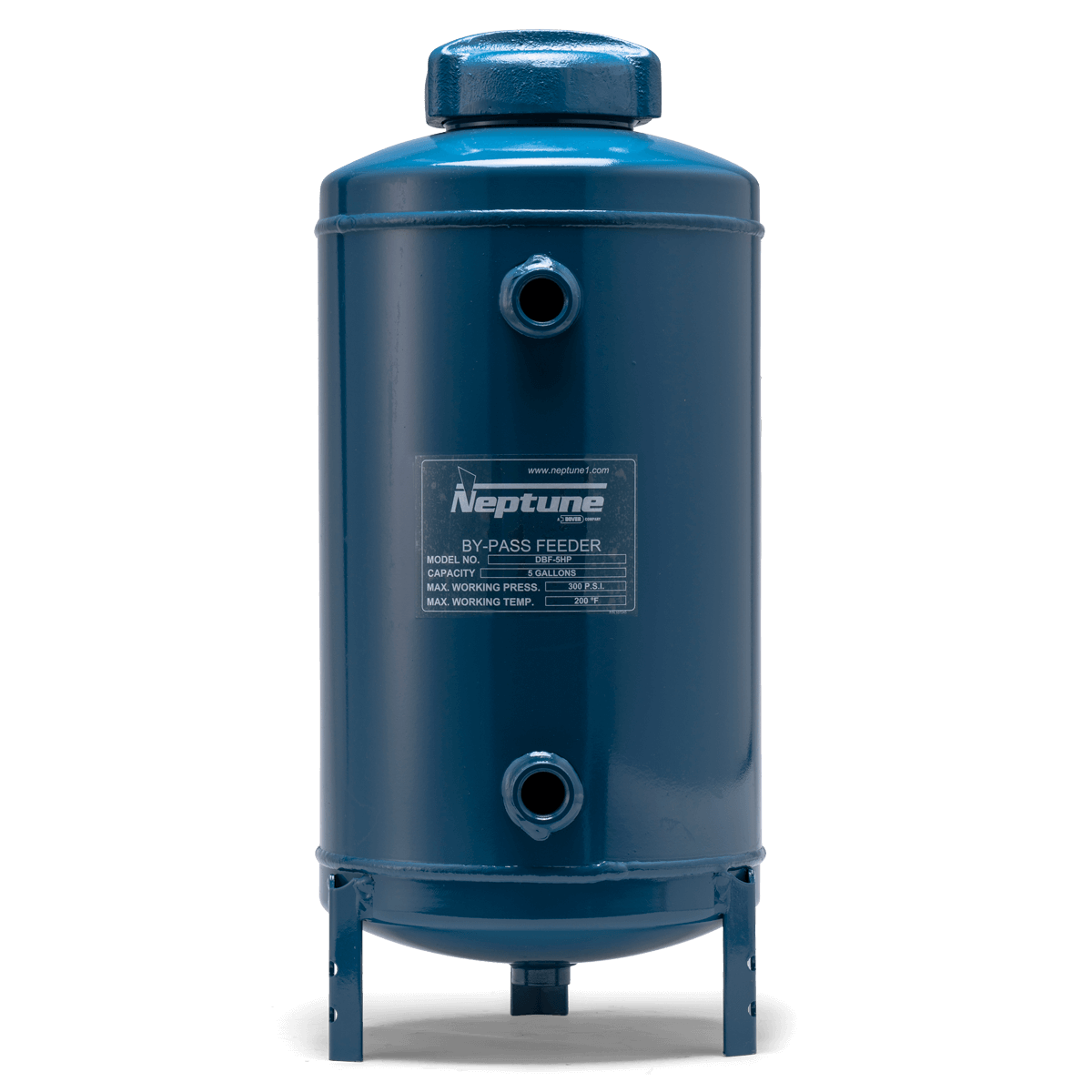 Neptune offers two styles of By-Pass Feeders: A vertical style with dish bottom in and a vertical style with dish bottom out. Filters are available for cleanup and monitoring. All By-Pass Feeders feature a high-pressure cap rated to 300 psi (20.7 bar) as a standard. The By-Pass Feeder caps are designed for quick-opening, high-pressure closure for better sealing with less force and eliminates the need for tools. Design binds cap tightly when under pressure, making it necessary to bleed pressure from tank before removing.