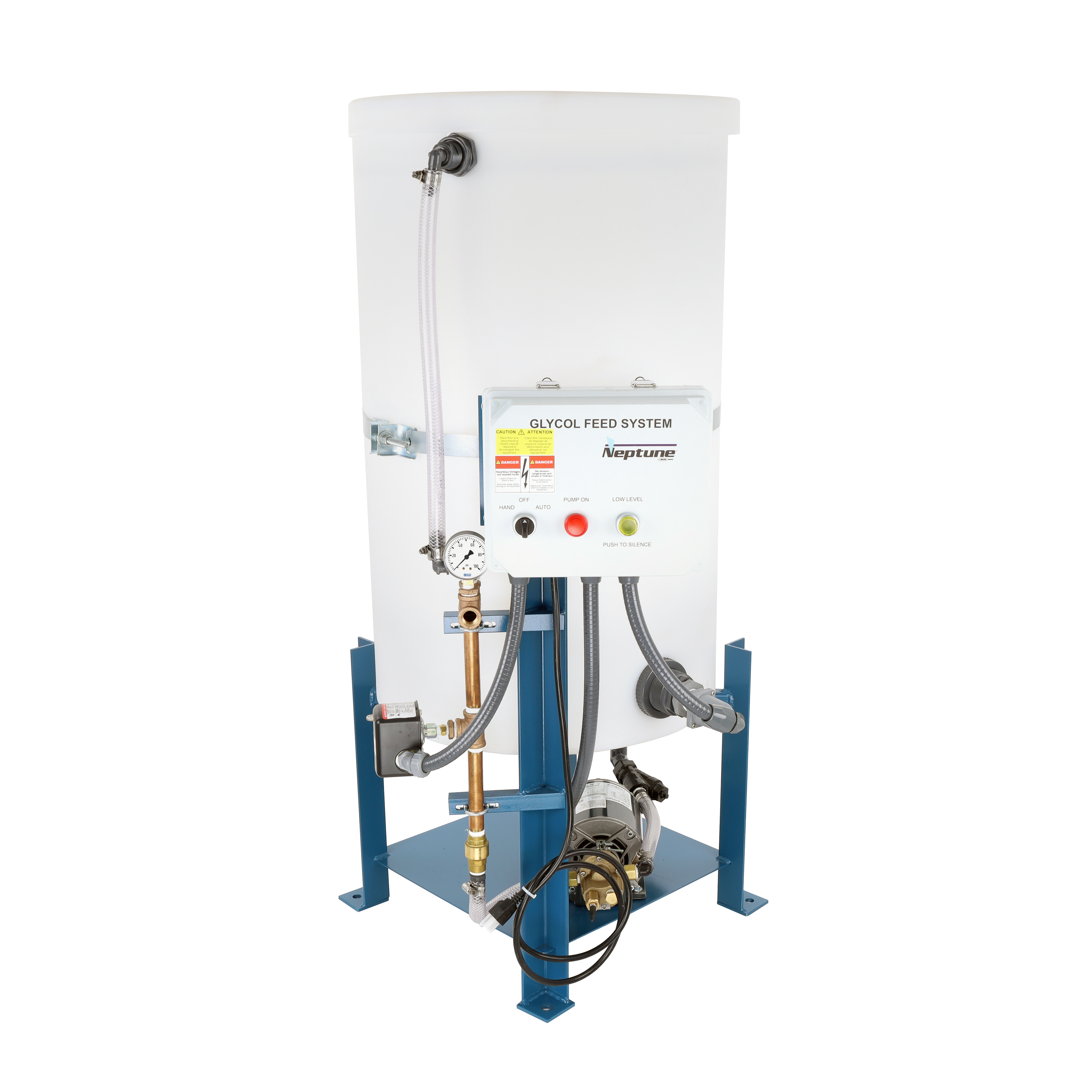 Neptune Glycol Feeders are designed for the addition of glycol solution to closed loop chilled or hot water systems. The system automatically maintains pressure in the loop by adding glycol solution to make up for losses which occur due to leakage.