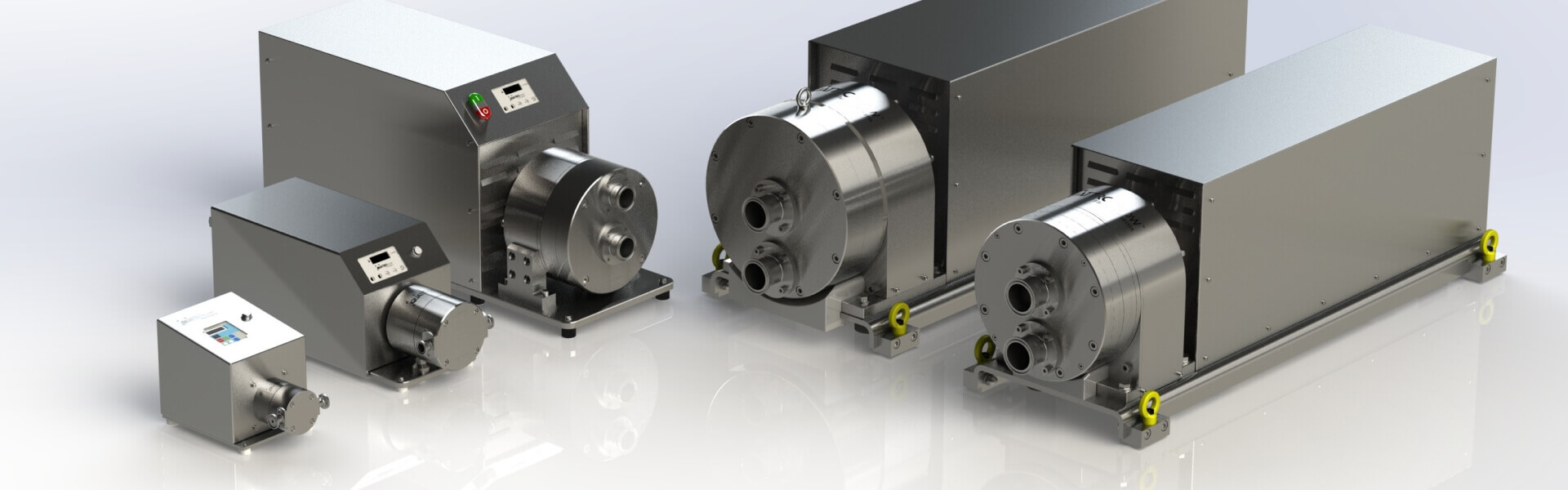 Quattroflow multiple-use pumps are available in multiple sizes – QF150, QF1200, QF2500, QF4400, QF5050, QF5k, QF10k and QF20k (arranged in order of flow capacity) – and offer clean-in-place (CIP), sanitize-in-place (SIP) and autoclave capabilities. The smallest size, the QF150, comes with a standard integrated controller. For all other sizes, a separate control box is available. In addition, the QF1200 and QF4400 sizes are also available in a space saving compact version with integrated controller and high turndown ratio (QF1200S-CV, QF1200S-HT, QF4400S-HT).