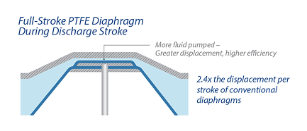 Because PTFE is chemically inert, PTFE Full-Stroke Diaphragms are non-reactive to most aggressive chemicals and solvents that are used in paints and coatings manufacturing, which helps: