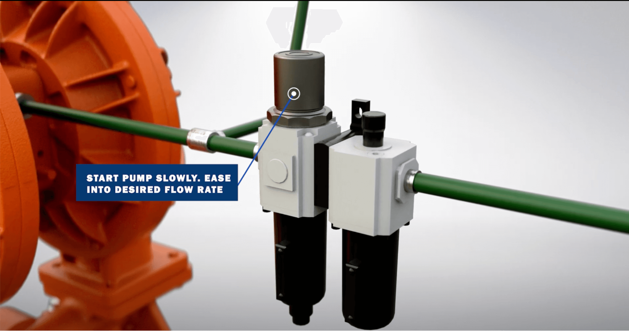 Whether the pump is starting for the first time or after service, start the pump slowly to allow the pump to ease into the desired flow rate or performance. This reduces the load on the pump, extending the life of the equipment and components.