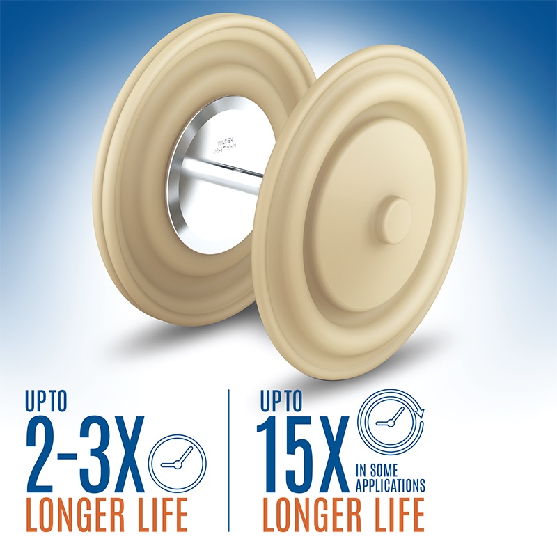 Unlike conventional diaphragms that fall short in meeting the demands of critical pumping applications, the innovative Chem-Fuse™ Integral Piston Diaphragm (IPD) features a simple one-piece design that offers greater durability, increased flex life and easier cleanability.